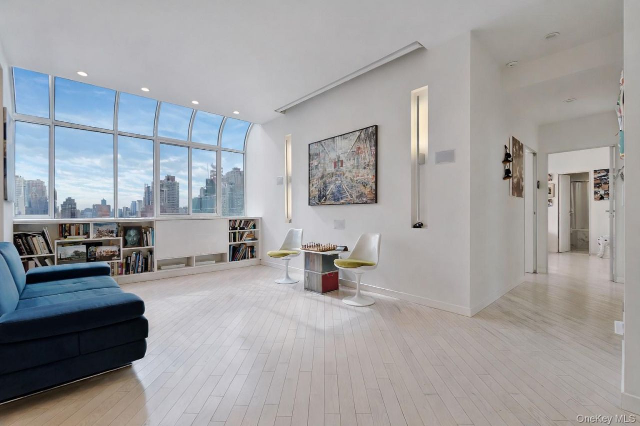 Perched atop the iconic Turtle Bay Towers, this beautifully renovated two-bedroom, two-bathroom penthouse offers dramatic skyline and river views framed by the building's signature greenhouse windows, filling the home with exceptional natural light.The spacious living and dining areas create an ideal setting for both everyday living and effortless entertaining. A thoughtfully designed kitchen features custom cabinetry, stone countertops, and high-end appliances.The primary suite enjoys open southern exposures, generous closet space, and a serene en-suite bath with a soaking tub and refined finishes. A well-proportioned second bedroom also features expansive greenhouse windows and is complemented by a beautifully appointed second full bathroom with a glass-enclosed shower and mosaic tile detailing.Turtle Bay Towers is an iconic pre-war loft building offering a 24-hour doorman, live-in superintendent, landscaped rooftop terrace, garage, bike storage, private storage, and laundry facilities. The building is pet-friendly and allows pied-? -terre and investors.Ideally located moments from Grand Central, Whole Foods, Trader Joe's, Equinox, and some of Midtown's finest dining, this penthouse combines the tranquility of elevated living with the convenience of one of Manhattan's most vibrant neighborhoods.